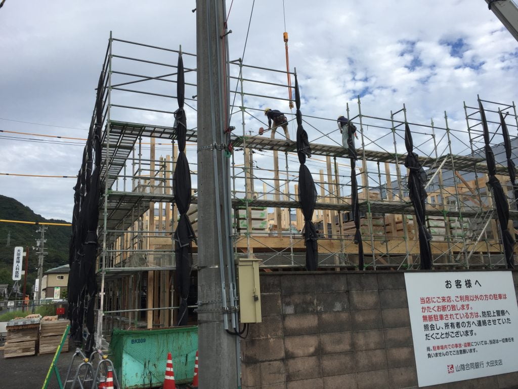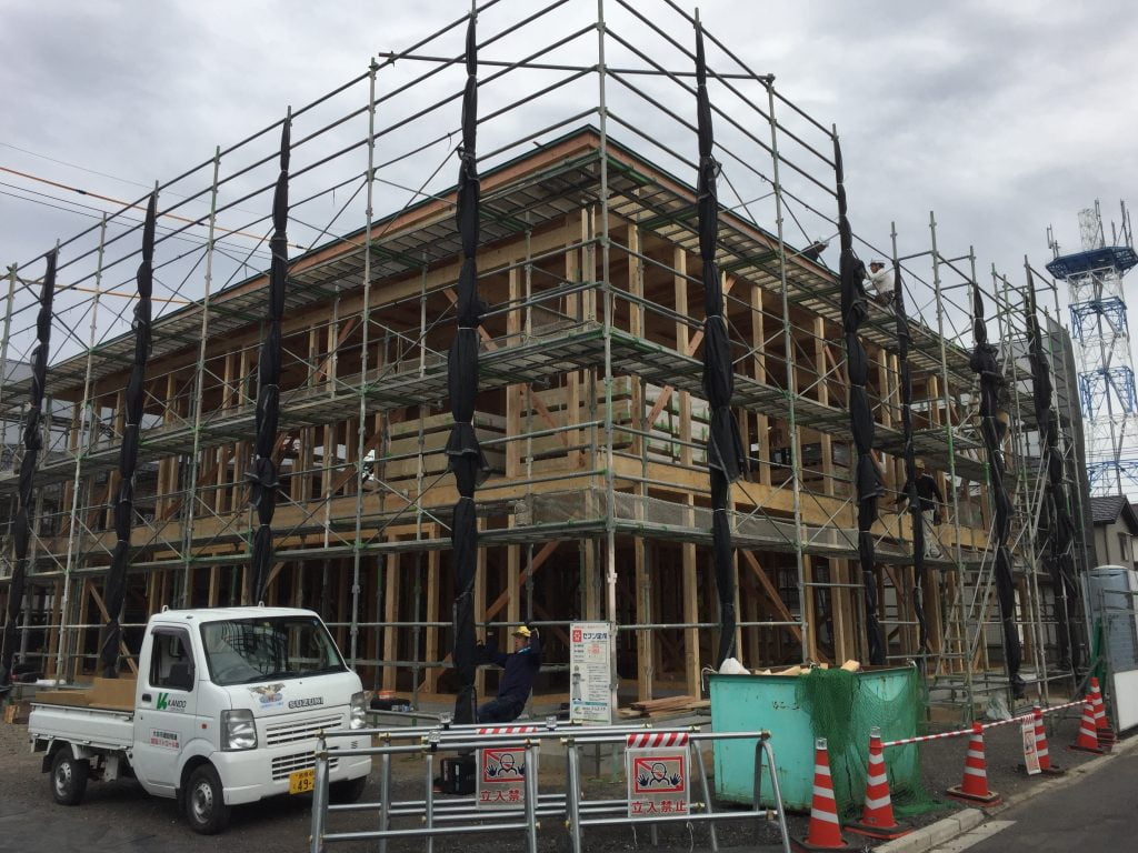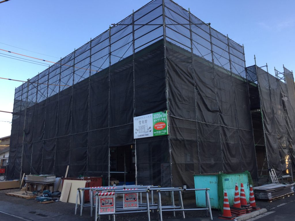 雪見院の建設工事 7月から基礎工事がはじまり、9月に棟上げが行われました。 現在は外装がほぼできあがり、内部の工事が急ピッチで進んでいます。